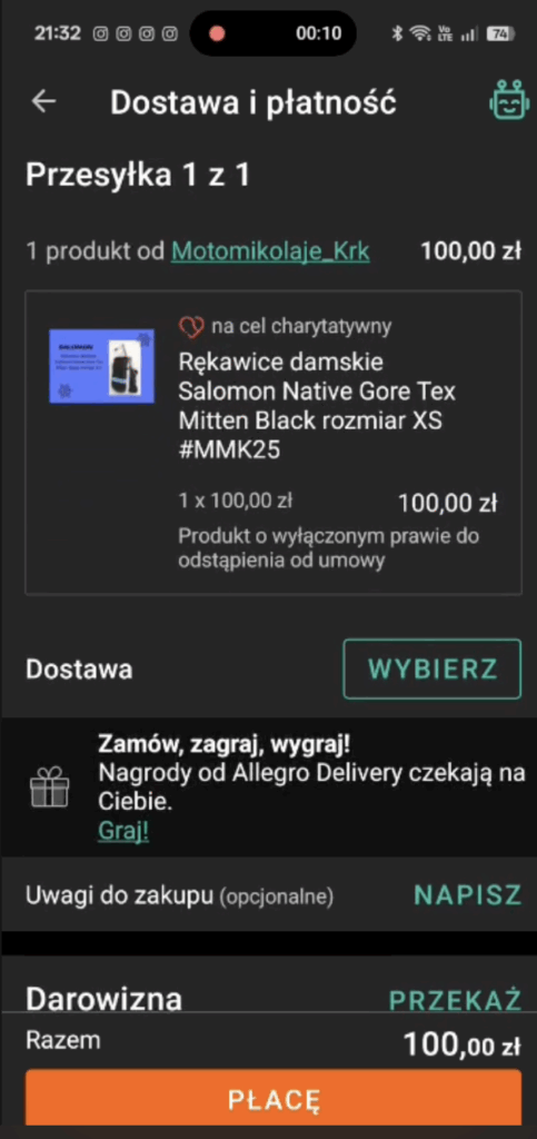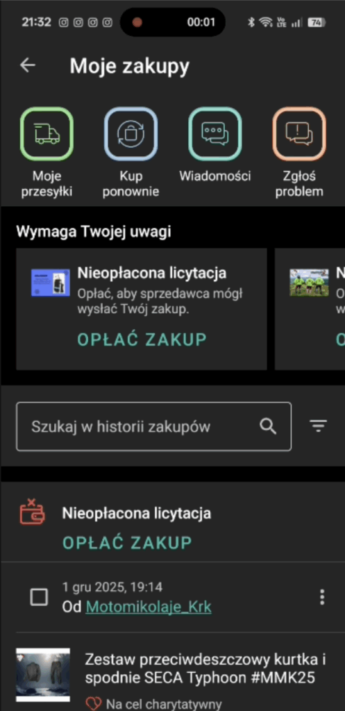 - Wejdź w Moje Allegro -> Moje zakupy: