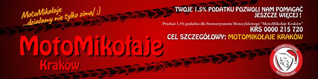 Ależ oczywiście! Rozliczając podatek, możesz zdecydować o przekazaniu 1.5% jego wartości na rzecz Stowarzyszenia MotoMikołaje Kraków. Wystarczy, że wpiszesz nasz numer KRS 0000 215 720 w odpowiednią rubrykę formularza podatkowego, a urząd skarbowy automatycznie przekaże należną kwotę.