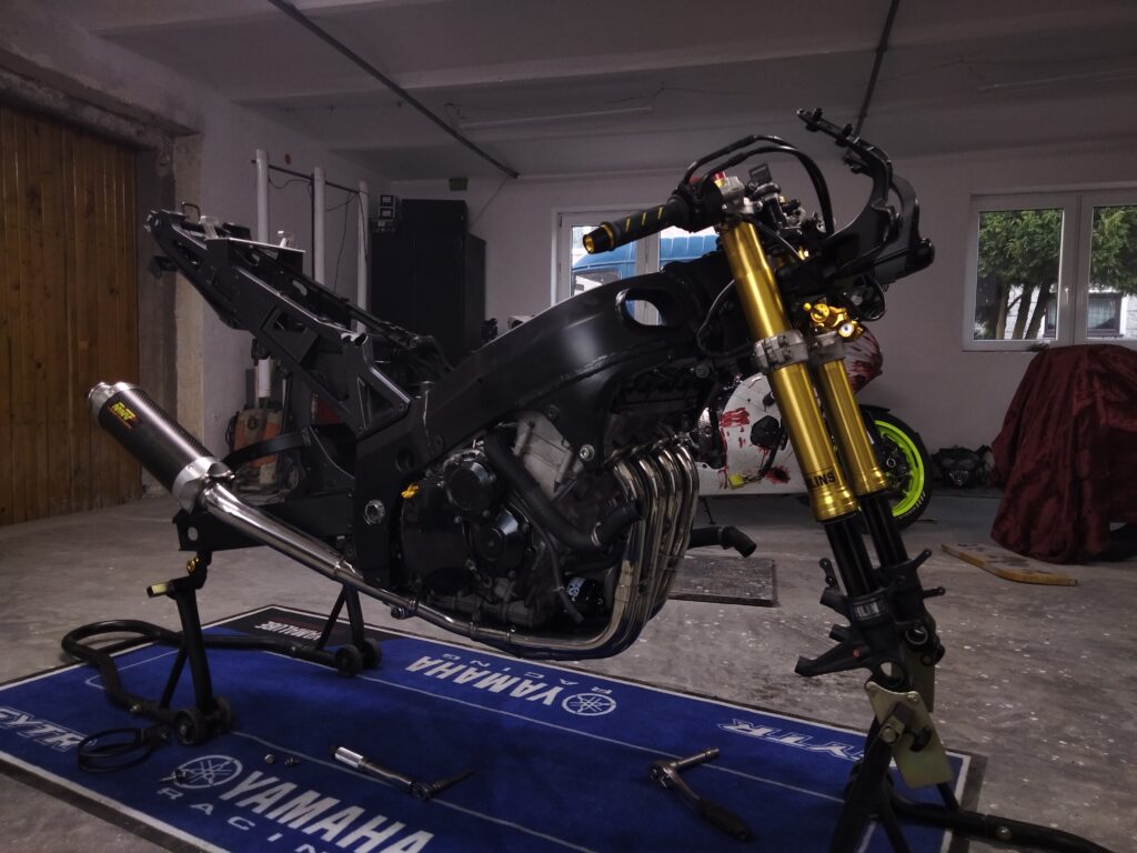 Trafił jako zwykły motocykl na zwykły serwis. Troche połamane owiewki żeby je polakierować. Łożyska główki ramy rozrząd i standardowy serwis.